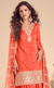 Embroidery Sharara Suit is an indian outfit designed for this festivite season. This set features embossed embroidery work with golden reshamkari zari, gotta patti and sequins work detail on shimmering premium silk kurti style top paired with premium silk flare and heavily ghera embellished flared sharara bottom with satin lining. The beauty part is it’s reshamkari zari and sequins embroidery enhanced premium silk printed dupatta. Team it up with golden jewellery and fancy clutch to look mesmerising on this Eid festival.
