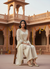 Elevate your ethnic wardrobe with this exquisite beige ensemble crafted from premium simmer silk. The suit features intricate embroidery work adorned with shimmering sequins, delicate cutdana, and ornamental beads that create a sophisticated, multi-dimensional aesthetic. The coordinating palazzo pants offer comfortable elegance, while the flowing dupatta completes the traditional look with grace. Perfect for weddings, festive celebrations, or special occasions, this three-piece set combines masterful craftsmanship with refined style. The luxurious fabric drapes beautifully, ensuring both comfort and a polished appearance throughout your event.