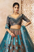This stunning Blue lehenga for wedding, featuring intricate aari work and delicate floral motifs. The rich Banarasi patch adds a regal touch, making it a perfect blend of elegance and heritage for your wedding lehenga.