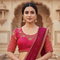 Voyage through the world of fashion by wearing this delicate look from Paaie. The Magenta blouse is handcrafted in pure handwoven silk base with a flattering round neckline and short sleeves above elbow. The neckline and sleeves are accentuated with hand embroidery in gold. Style this with chunky earrings, juttis and a small handbag.