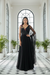 Fabric- georgette with net, work- metal stripes with multicolor crystal