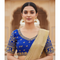 Voyage through the world of fashion by wearing this delicate look from Paaie. The blouse is handcrafted in pure handwoven silk base with a flattering round neckline and half sleeves. The neckline and sleeves are accentuated with embroidery. Style this with chunky gold earrings, gold juttis and a small handbag.
