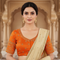 Voyage through the world o f fashion by wearing this delicate look from Paaie. The blouse is handcrafted in pure handwoven silk base with a flattering round neckline and half sleeves. The neckline and sleeves are accentuated with embroidery. Style this with chunky gold earrings, gold juttis and a small handbag.