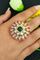 Classy and detailed designer gold plated kundan beaded ring. This is stylish and adjustable. This ring will work well with traditional, formal, and western formals.