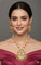 This exquisite pendant set features intricately designed royal kundan stones, plated in a luxurious layer of gold. Perfect for special occasions or daily wear, this pendant set will add a touch of elegance and sophistication to any outfit. Handcrafted with expert precision and quality materials, this is a must-have for any jewelry collection.