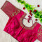 Voyage through the world o f fashion by wearing this delicate look from Paaie. The blouse is handcrafted in pure handwoven silk base with a flattering round neckline and half sleeves. The neckline and sleeves are accentuated with embroidery. Style this with chunky gold earrings, gold juttis and a small handbag.