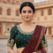 Voyage through the world of fashion by wearing this delicate look from Paaie. The blouse is handcrafted in pure handwoven silk base with a flattering round neckline and half sleeves. The neckline and sleeves are accentuated with embroidery. Style this with chunky gold earrings, gold juttis and a small handbag.