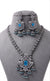 Elevate your elegance with this Designer Semi-Precious American Diamond Necklace paired with matching earrings. Expertly crafted, the set features radiant American diamonds that add refined sparkle, ideal for formal occasions or special events. Its sophisticated design ensures versatility, complementing both traditional and contemporary attire with timeless charm and understated luxury.