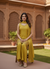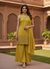 Elevate your ethnic wardrobe with this stunning designer suit crafted from premium chinon silk. The vibrant yellow ensemble features intricate sequins and cutdana embroidery work that creates a sophisticated, eye-catching aesthetic. This three-piece set includes a beautifully embellished kurta, matching palazzo pants for comfortable elegance, and a coordinating dupatta to complete your look. Perfect for festive occasions, weddings, or special celebrations, the luxurious fabric drapes gracefully while the detailed embroidery adds timeless appeal. The combination of traditional craftsmanship and refined design makes this piece a versatile addition to your collection.