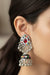 These are a traditional pair of earrings in Oxidised style. The earrings is covered with intricate designs and small shiny stones.These earrings work well with ethnic Wear. It is easy to see why this jewellery has gained popularity. Not only does it have a unique look but it is versatile and cost effective in comparison to purer metals like gold and silver. This metal comes in myriad patterns with stone work, delicate carving and enamelling to name a few. These pieces have an old world charm and traditional appeal. Oxidized metal offers a fresh and novel look in the world of gold and silver jewellery.