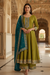 Elevate your ethnic wardrobe with this stunning Anarkali suit set, crafted from premium georgette fabric that drapes beautifully. The sophisticated Green & Blue color palette is enhanced by intricate sequins and cutdana embroidery work, creating a luxurious, eye-catching design perfect for festive occasions and celebrations. The traditional Anarkali silhouette offers graceful movement and timeless elegance, while the detailed embellishments showcase expert craftsmanship. Ideal for weddings, parties, and special events, this ensemble combines classic Indian aesthetics with refined detailing for a truly memorable look.
