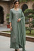 Elevate your ethnic wardrobe with this stunning green Chinon silk ensemble. The suit features intricate sequins and cutdana embroidery work that catches light beautifully, creating an eye-catching appeal perfect for festive occasions and celebrations. The coordinating palazzo pants offer comfortable, elegant draping, while the matching dupatta completes the sophisticated look. Crafted from premium Chinon silk, this three-piece set combines traditional embroidery techniques with refined tailoring, making it an ideal choice for weddings, parties, and special events where you want to make a lasting impression.