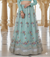 This light blue lehenga skirt features intricate sequin work on a delicate net fabric. The soft color adds a touch of elegance to the piece. Perfect for special occasions, this skirt will make you stand out with its unique design and craftsmanship. Add it to your wardrobe for a timeless addition to your ethnic collection.
