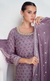 This Light Purple Chinon Sharara suit features intricate embroidery and delicate sequence work, making it an elegant choice for party wear. The rich color and detailed craftsmanship enhance its festive appeal, while the comfortable fabric ensures ease of movement. Perfect for special occasions, this suit combines traditional design with contemporary style for a standout look.