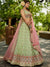 Radiant lime green lehenga set crafted from delicate tissue fabric, adorned with intricate sequins embroidery throughout. This three-piece ensemble features a beautifully embellished lehenga skirt, matching blouse, and flowing dupatta. Perfect for weddings, celebrations, and festive occasions, the luminous color and detailed embroidery create an elegant, eye-catching look that commands attention.