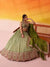 Elevate your ethnic wardrobe with this stunning lime green lehenga set, crafted from premium jacquard tissue fabric that drapes beautifully. The ensemble features intricate sequin embellishments and detailed thread embroidery throughout, creating a sophisticated shimmer perfect for weddings, celebrations, and special occasions. This three-piece set includes a perfectly tailored lehenga skirt, coordinating blouse, and flowing dupatta, each piece designed to complement one another seamlessly. The jacquard weave adds texture and dimension, while the embroidery work showcases traditional craftsmanship. Ideal for those seeking an elegant fusion of classic design and contemporary flair.