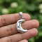 A sleek 925 sterling silver crescent shape evil eye pendant, designed to feel lunar, protective, and beautifully minimal.