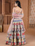 This Multi Color Fendi Silk Lehenga Choli showcases intricate sequins and thread work, blending traditional craftsmanship with contemporary elegance. Crafted from rich Fendi silk, the vibrant hues and detailed embellishments create a striking ensemble perfect for festive occasions. The fine thread work enhances texture and depth, making this lehenga choli a refined choice for those seeking a luxurious and distinctive ethnic outfit.