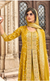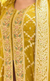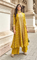 Look pretty adorning this readymade Mustard Yellow colored Muslin Jacquard slitted kameez crafted with zari woven work enhanced by handwork embroidery. Paired with a matching-colored chiffon palazzo and a chiffon dupatta.