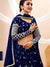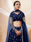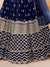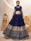 This navy blue lehenga choli features intricate silver-toned embroidery, creating a striking contrast that highlights its detailed craftsmanship. Paired with a matching dupatta, this ensemble blends traditional elegance with contemporary style, making it ideal for festive occasions and celebrations. The rich color and fine embroidery ensure a sophisticated and graceful appearance.