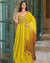 This elegant olive yellow gown is crafted from Heavy premium silk, offering a luxurious feel and graceful drape ideal for special occasions. Paired with a beautifully printed dupatta, it combines traditional charm with contemporary style, making it a perfect choice for party wear. The rich fabric ensures durability and comfort, while the vibrant color enhances your presence at any event.