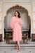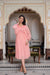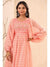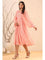 This peach-colored and salmon georgette A-line midi dress features intricate ethnic motifs, blending traditional artistry with contemporary style. Its lightweight fabric ensures comfort and graceful movement, while the flattering A-line silhouette suits various body types. Perfect for festive occasions or cultural events, this dress offers an elegant yet effortless look.