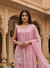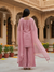 Elevate your ethnic wardrobe with this stunning pink ensemble crafted from premium shimmer silk. The suit features intricate embroidery work adorned with sequins, cutdana, and beads that create a luxurious, eye-catching finish. The coordinating palazzo pants offer comfortable elegance, while the flowing dupatta completes the sophisticated look. Perfect for weddings, festivals, and special occasions, this three-piece set combines traditional craftsmanship with refined design. The detailed embellishments showcase expert artistry, making it an