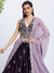Indulge in the richness of this Purple Pure Georgette Sequins and thread embroidery Lehenga choli. Adorned with intricate sequins and thread embroidery, this outfit is sure to make you stand out at any party. The lightweight Georgette fabric ensures maximum comfort while enhancing your style quotient. Perfect for any special occasion.