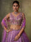 Make a grand entrance in this premium purple tissue lehenga set, finished with shimmering sequins embroidery for a rich, celebration-ready look.