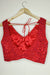 Add a touch of elegance with this red satin blouse, adorned with stunning nalki beads and moti hand embroidery work. This readymade blouse will elevate any outfit and make you stand out. Perfect for any special occasion.