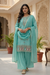 Sea-Green Simmer Tissue Sequins Cutdana Work Embroidery Suit With Garara