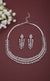 Discover the elegance of this Semi-Precious American Diamond Silver Plated Necklace and Earrings set. Made with high-quality materials, this set adds a touch of sophistication and sparkle to any outfit. The semi-precious American diamonds shine bright, giving you a glamorous look for any occasion.