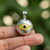 Shaped in 925 sterling silver, this circle evil eye pendant in yellow tones blends symbolism with modern elegance.