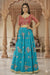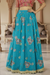 This sky blue ghagra skirt is made of georgette tissue material, with a gorgeous golden border for a touch of elegance. Perfect for party wear, this skirt provides a comfortable fit and stunning style for any occasion. Elevate your wardrobe with this must-have piece.
