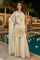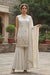 Elevate your ethnic wardrobe with this sophisticated beige suit set, crafted from luxurious simmer tissue fabric that drapes beautifully. The sleeveless design showcases intricate golden zari embroidery paired with delicate stone work detailing, creating a refined aesthetic perfect for weddings, celebrations, and formal occasions. The lightweight, breathable fabric ensures comfort throughout wear, while the expert craftsmanship delivers timeless elegance. Ideal for pairing with traditional jewelry and accessories for a polished, coordinated look.