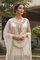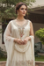 Elevate your ethnic wardrobe with this exquisite cream-colored suit set, crafted from luxurious simmer tissue fabric that drapes beautifully. The sleeveless design showcases intricate golden zari and stone embellishments, creating a sophisticated look perfect for weddings, celebrations, and formal occasions. The delicate detailing demonstrates masterful craftsmanship, while the neutral cream tone ensures versatility with your existing accessories. Ideal for those