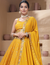 This vibrant yellow lehenga choli features intricate sequins and thread embroidery, creating an exquisite design perfect for party wear. The detailed craftsmanship adds a sophisticated shine without overwhelming, making it an ideal choice for festive occasions and celebrations. Comfortable yet striking, this ensemble offers a blend of traditional elegance and contemporary style.